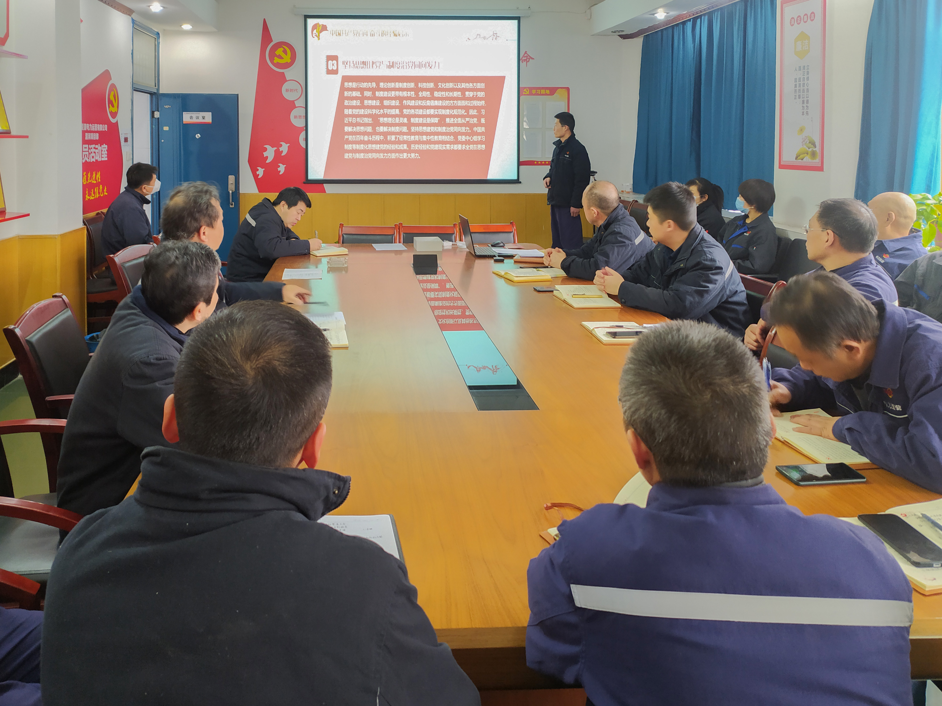 12月15日,渭河項(xiàng)目部黨支部組織開展了“學(xué)習(xí)十九屆六中全會(huì)精神”專題黨課活動(dòng)。黨課圍繞全會(huì)召開的背景、主要議程、《中共中央關(guān)于黨的百年奮斗重大成就和歷史經(jīng)驗(yàn)的決議》的主要精神等方面詳細(xì)解讀了十九屆六中全會(huì)精神。黨員紛紛表示,要從黨的百年奮斗重大成就和歷史經(jīng)驗(yàn)中汲取奮進(jìn)力量,以更高的責(zé)任感和使命感投身于工作和學(xué)習(xí)中,為公司高質(zhì)量發(fā)展貢獻(xiàn)力量。