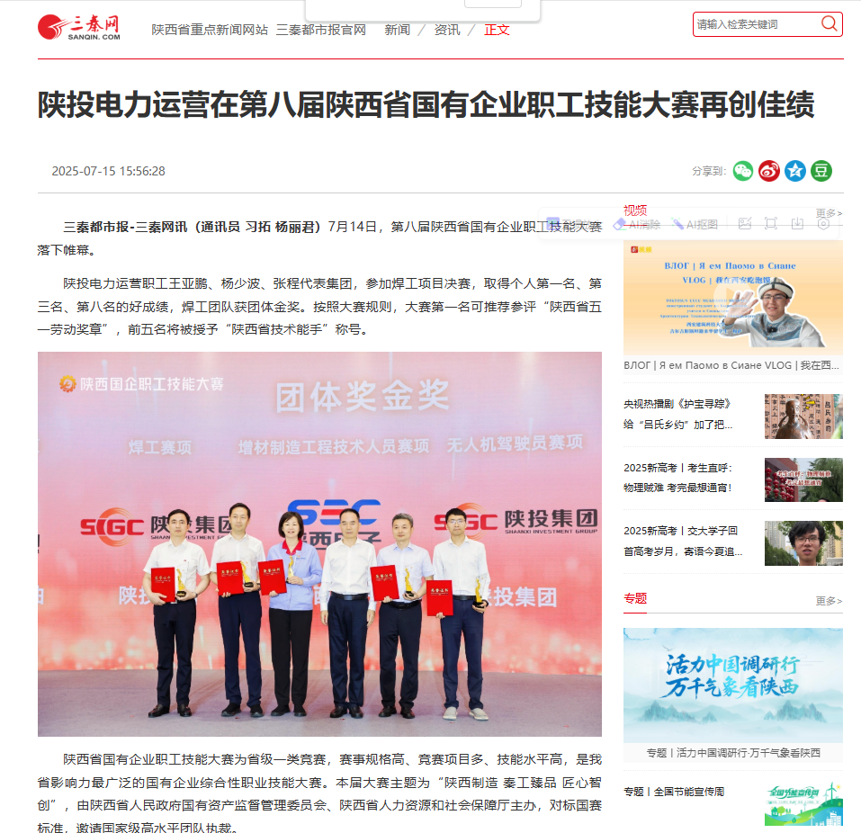 7月14日,第八屆陜西省國有企業(yè)職工技能大賽落下帷幕。陜投電力運營職工王亞鵬、楊少波、張程代表集團(tuán),參加焊工項目決賽,取得個人第一名、第三名、第八名的好成績,焊工團(tuán)隊獲團(tuán)體金獎。按照大賽規(guī)則,大賽第一名可推薦參評“陜西省五一勞動獎?wù)隆?,前五名將被授予“陜西省技術(shù)能手”稱號。