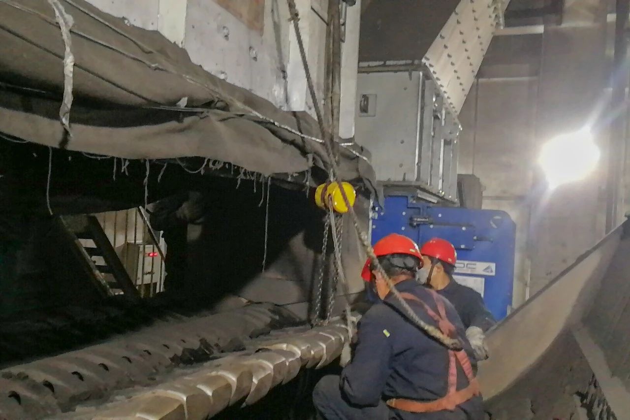 3月28日8:00,正在運(yùn)行中的麟電輸煤系統(tǒng)乙細(xì)碎煤機(jī)因振動(dòng)大突然停運(yùn),直接威脅到機(jī)組的正常運(yùn)行。麟北項(xiàng)目部輸煤班立即調(diào)兵遣將,投入到這場(chǎng)搶修攻堅(jiān)戰(zhàn)中。從拆卸螺栓、揭開(kāi)大蓋,到活動(dòng)錘臂,全體人員經(jīng)過(guò)近5個(gè)小時(shí)的鏖戰(zhàn),終于在凌晨時(shí)分圓滿完成此次搶修任務(wù)。